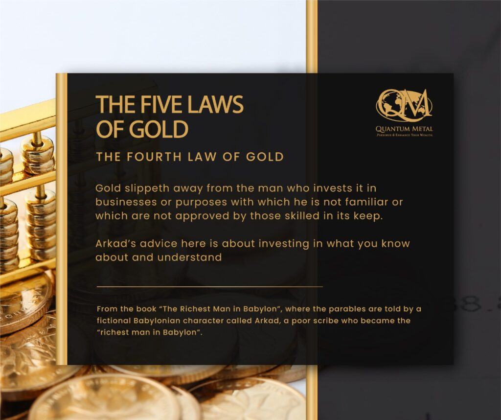 Gold slippeth away from the man who invests it in businesses or purposes with which he is not familiar or which are not approved by those skilled in its keep.